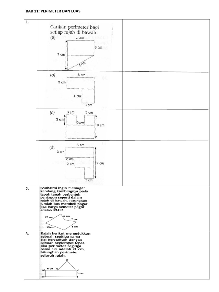 Bab 11: Perimeter Dan Luas Tingkatan 1